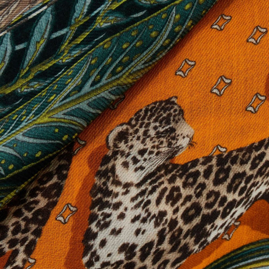 colour-block design printed cashmere stole