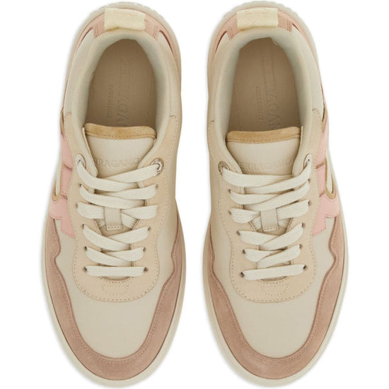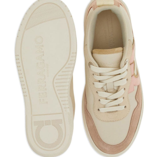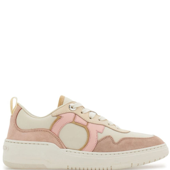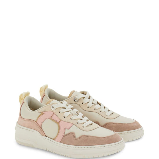 Cream white/blush pink leather gancini print logo patch to the side suede panelling pull-tab at the heel embossed logo to the rear logo-debossed tongue round toe front lace-up fastening branded leather insole flat rubber sole gancini leather sneakers size and fit - our boutique offers the following fittings: m (medium) for sporty women shoes and c (wide) for classic women shoes. do not hesitate to contact us to have more information.