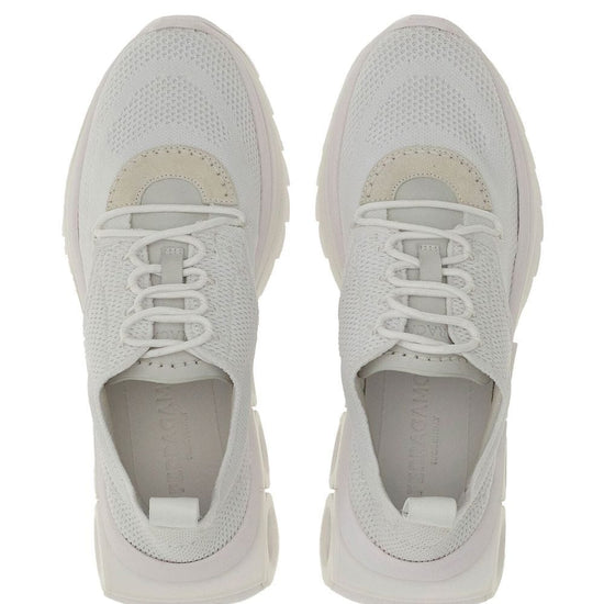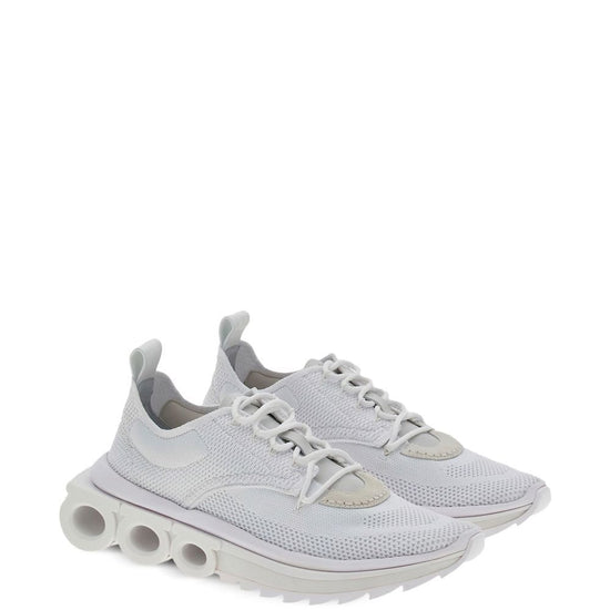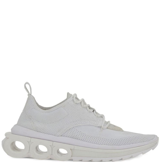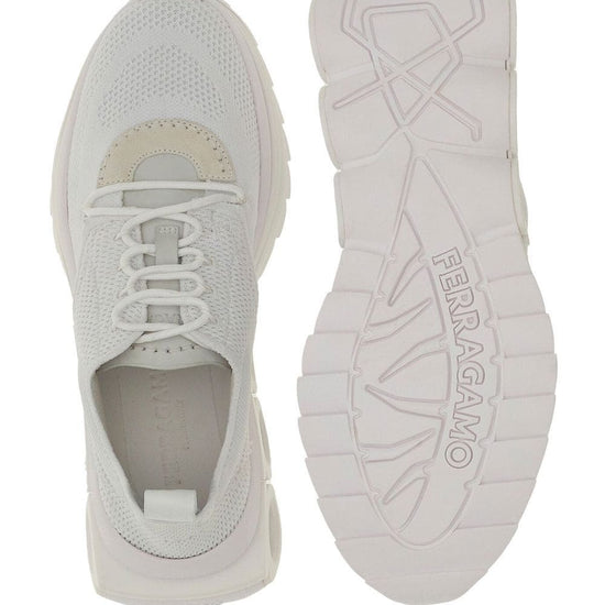 Gancini-plaque low-top sneakers from ferragamo featuring knitted upper, gancini plaque, logo-embossed tongue, logo at the sole, branded heel counter, panelled design, pull-tab at the heel, front lace-up fastening, round toe, flat rubber sole, branded insole, optical white and calf leather. nima sneakers size and fit - our boutique offers the following fittings for salvatore ferragamo shoes: eee (extra wide) for men shoes, m (medium) for sporty women shoes and c (wide) for classic women shoes. do not hesitate to contact us to have more information.