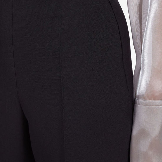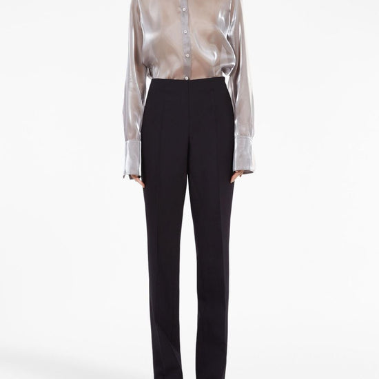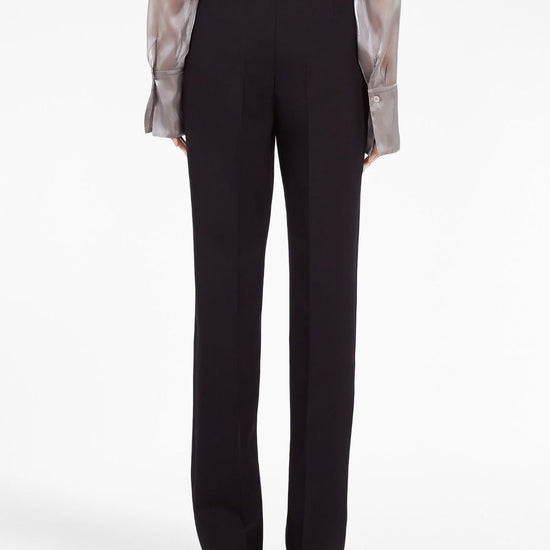 Straight-leg wool trousers from ferragamo featuring black, virgin wool, cotton, high waist, straight leg, side zip fastening and pressed crease. wool trousers size and fit - this piece fits true to size. we recommend you get your regular size. model is 1,75m / 5ft 8in wearing size 40 (it)