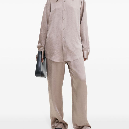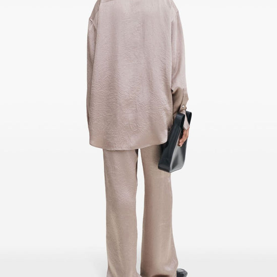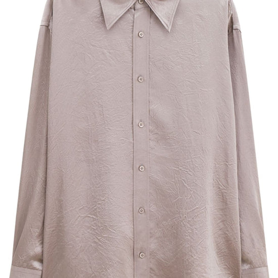 Sand beige naia™ cellulosic fibres crinkled finish front button fastening oversized pointed collar long sleeves buttoned cuffs rear pleat detailing curved hem long-sleeves shirt size and fit - this piece fits true to size. we recommend you get your regular size. model is 1,75m / 5ft 8in wearing size 36 (fr)