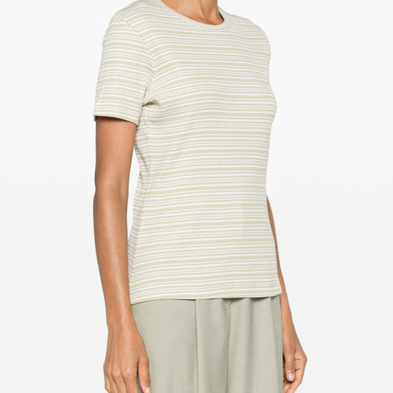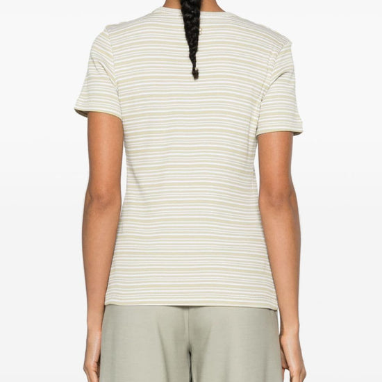 Dark yellow/white organic cotton fine ribbed horizontal stripe pattern round neck short sleeves straight hem this item is made from at least 50% organic materials. learn more about what makes a product conscious on our conscious criteria page g.collo, righe striped cotton t-shirt size and fit - this piece fits true to size. we recommend you get your regular size. model is 1,75m / 5ft 8in wearing size s