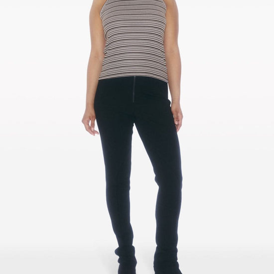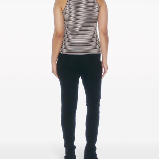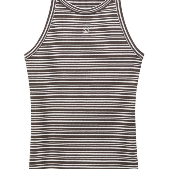 Coffee brown/chalk white organic cotton fine ribbed horizontal stripe print embroidered monogram to the front crew neck slip-on style halterneck racerback straight hem this item is made from at least 50% organic materials. learn more about what makes a product conscious on our conscious criteria page striped tank top size and fit - this piece fits true to size. we recommend you get your regular size. model is 1,75m / 5ft 8in wearing size s