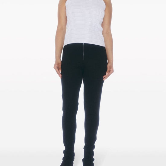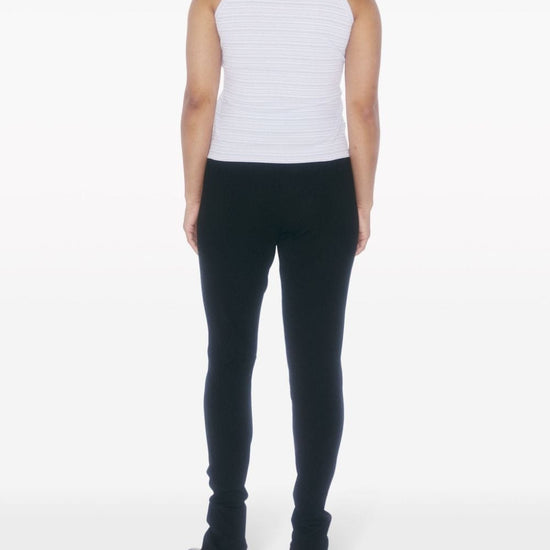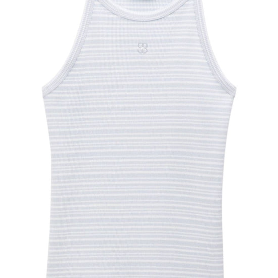 Blue-grey/chalk white organic cotton fine ribbed horizontal stripe print embroidered monogram to the front halterneck sleeveless racerback straight hem this item is made from at least 50% organic materials. learn more about what makes a product conscious on our conscious criteria page striped tank top size and fit - this piece fits true to size. we recommend you get your regular size. model is 1,75m / 5ft 8in wearing size s