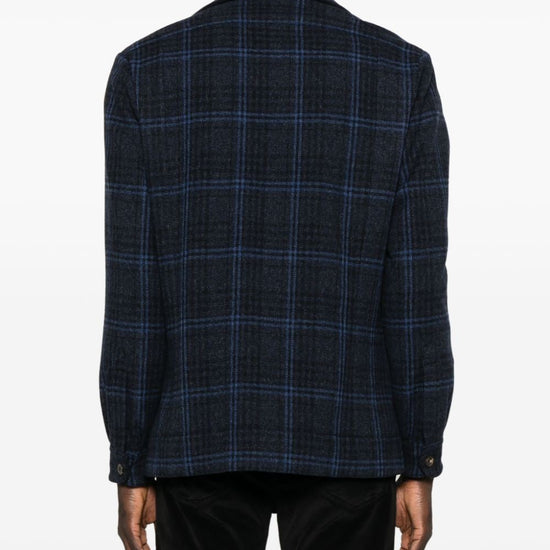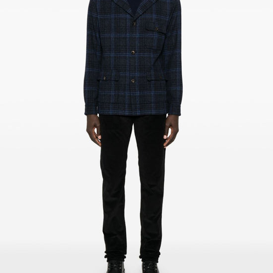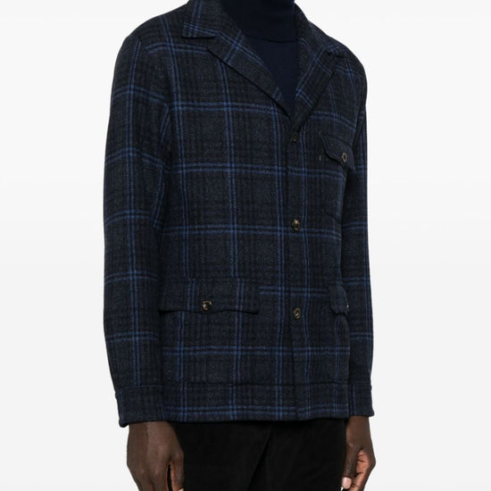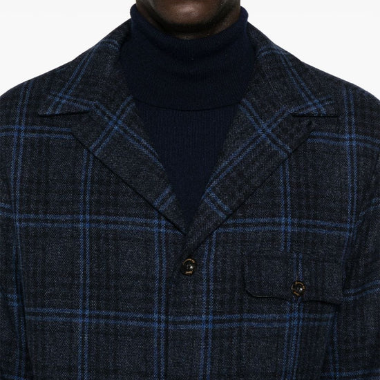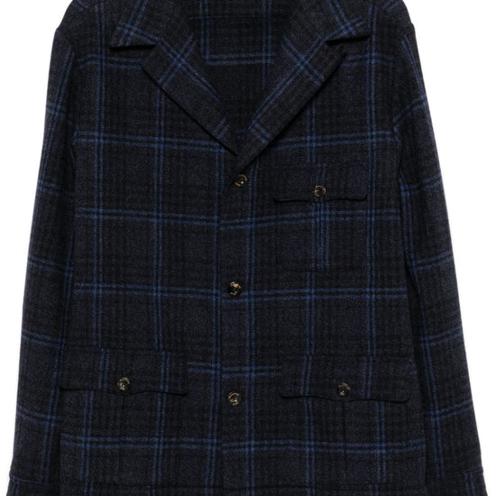 Blue virgin wool blend front button fastening check pattern notched collar long sleeves buttoned cuffs chest flap pocket two side flap pockets straight hem wool single-breasted jacket size and fit - this piece fits true to size. we recommend you get your regular size. model is 1,84m / 6ft 1in wearing size 48 (it)