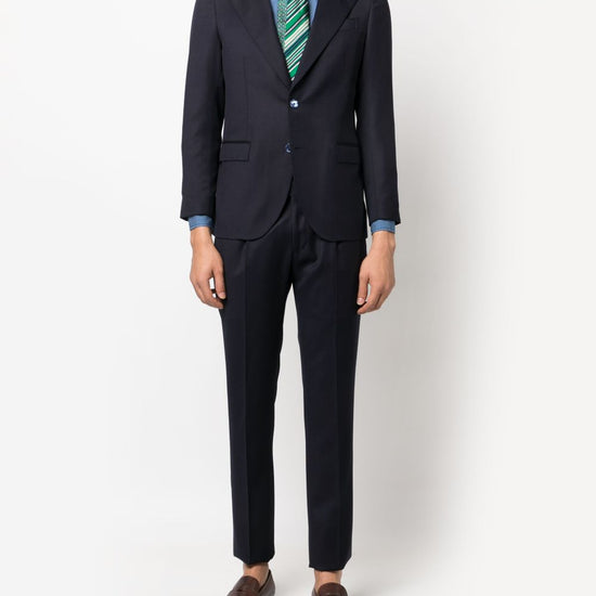 Navy blue cotton spread collar front button fastening long sleeves buttoned cuffs rear curved hem napoli cotton shirt