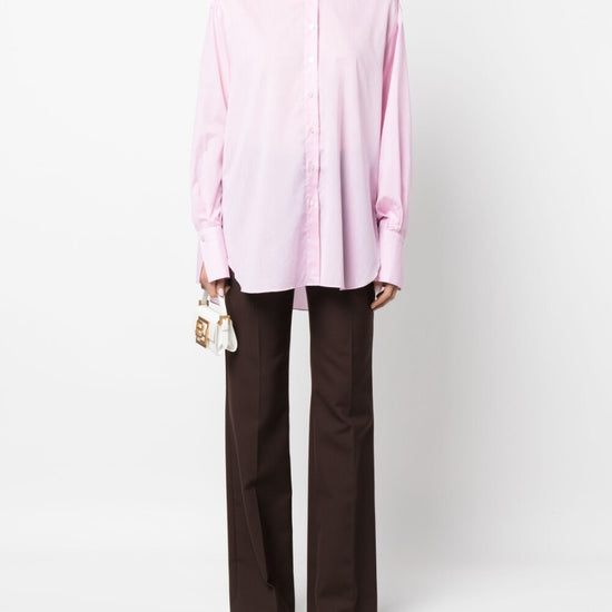 Long-sleeve button-up cotton shirt from finamore 1925 napoli featuring light pink, oversize frame, pointed flat collar, buttoned cuffs, front button fastening, cotton, long sleeves and curved hem. m/l, mussola cotton shirt size and fit - this piece fits true to size. we recommend you get your regular size. model is 1,75m / 5ft 8in wearing size 40 (it)