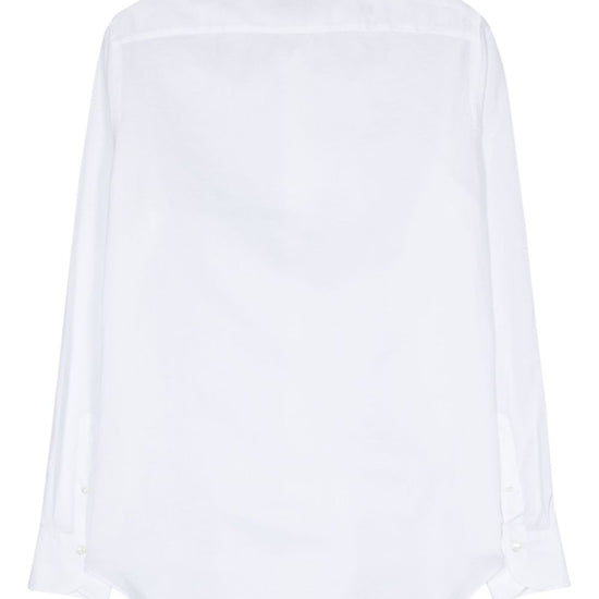 White cotton-linen blend semi-sheer construction classic collar front button fastening long sleeves buttoned cuffs hem gusset curved hem napoli cotton shirt