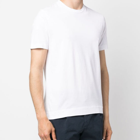 White cotton crew neck short sleeves straight hem cotton t-shirt size and fit - this piece fits true to size. we recommend you get your regular size. model is 1,84m / 6ft 1in wearing size m