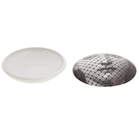 Fornasetti's jewelry boxes are small hand-decorated porcelain objects with a unique character. each piece from the tema e variazioni series features a different face of lina cavalieri, creating the joy of collecting.