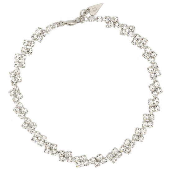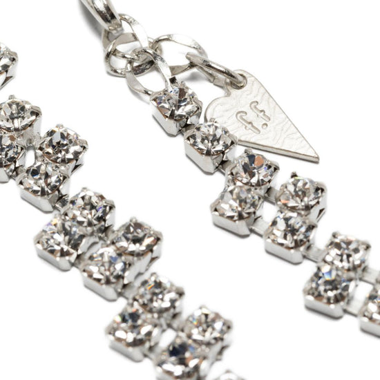 Silver-tone crystal embellishments rectangular-shape crystals chain necklace lobster claw fastening heart-shaped tag crystal collier