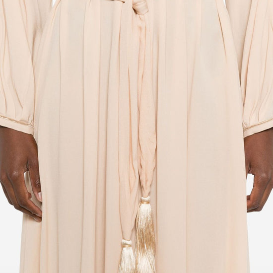 tassel detail crepe de chine long dress size and fit - this piece fits true to size. we recommend you get your regular size. model is 1,75m / 5ft 8in wearing size 1 (num)