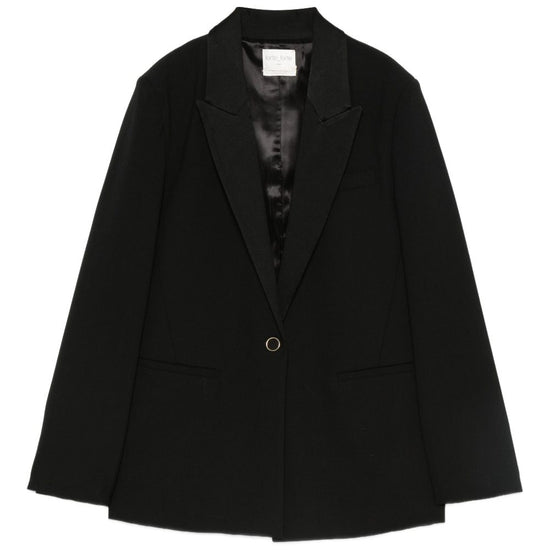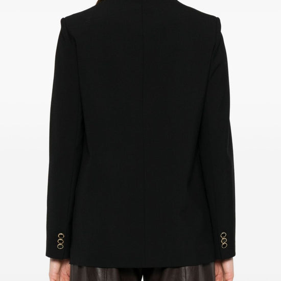 Black single-breasted closure peak lapels long sleeves welt pocket wool blend single-breasted jacket