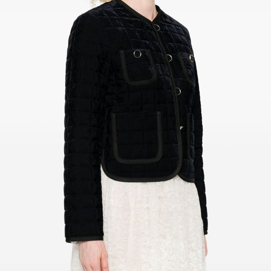 silver-tone buttons matelasse short jacket size and fit - this piece fits true to size. we recommend you get your regular size. model is 1,75m / 5ft 8in wearing size 1 (num)