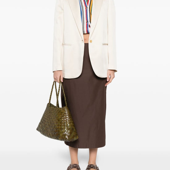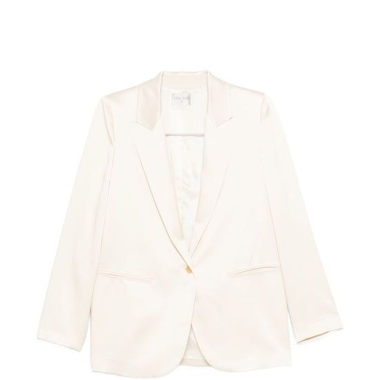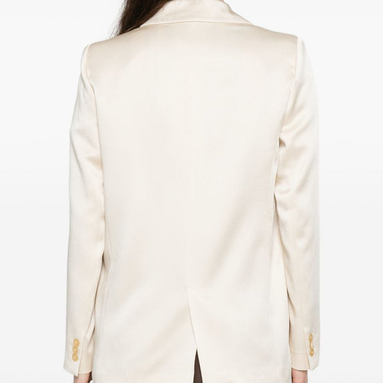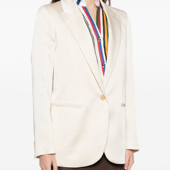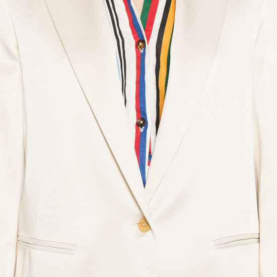 Ivory single-breasted button fastening peak lapels welt pockets single-breasted blazer jacket