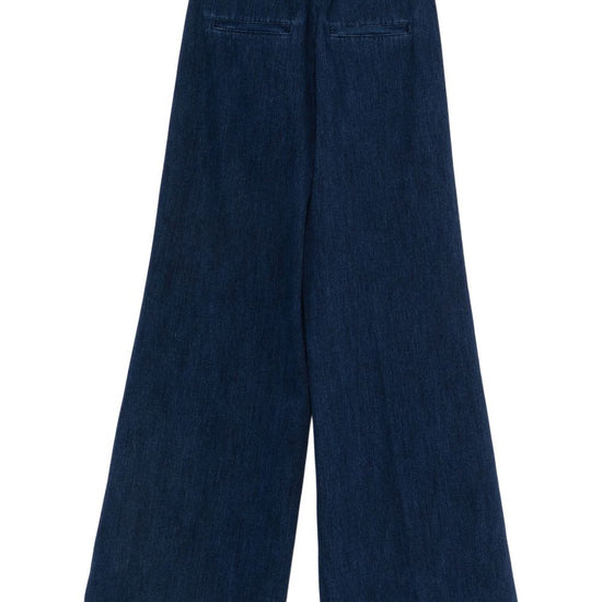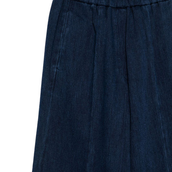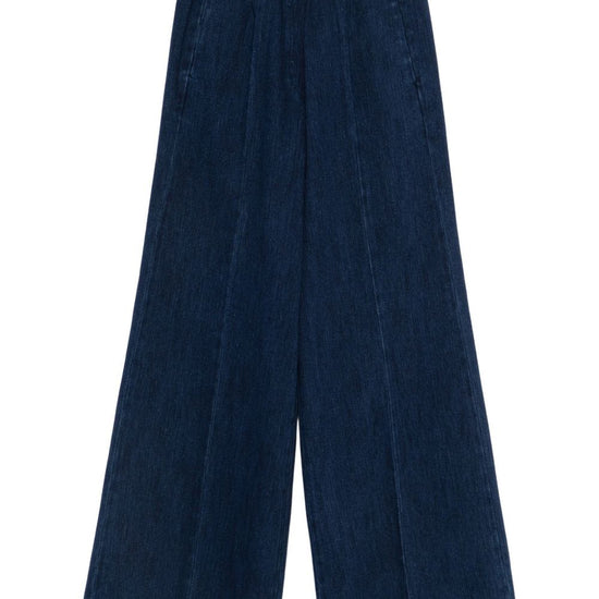 Blue elasticated waistband panelled construction slip pockets wide leg wide-leg trousers