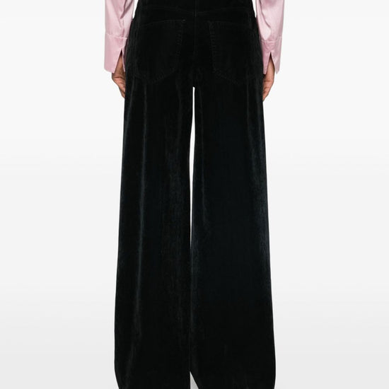 Black velvet texture high waist button fly five-pocket styling denim cotton jeans