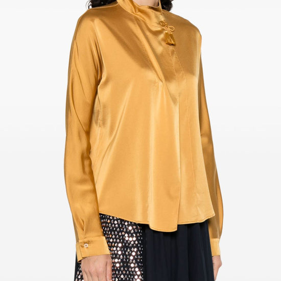 curved hem silk blouse size and fit - this piece fits true to size. we recommend you get your regular size. model is 1,75m / 5ft 8in wearing size 1 (num)