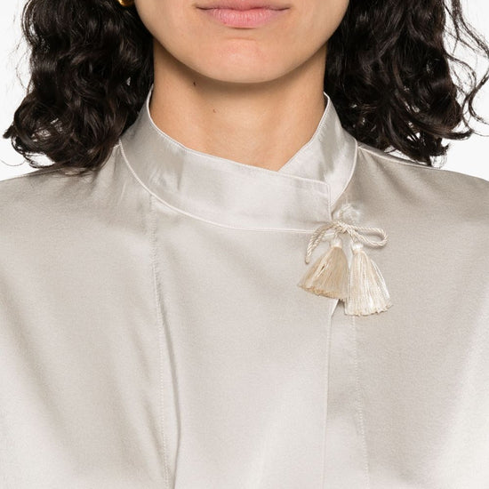 curved hem silk blouse size and fit - this piece fits true to size. we recommend you get your regular size. model is 1,75m / 5ft 8in wearing size 1 (num)