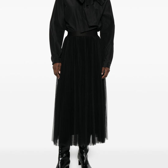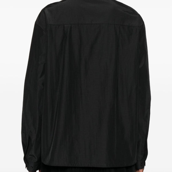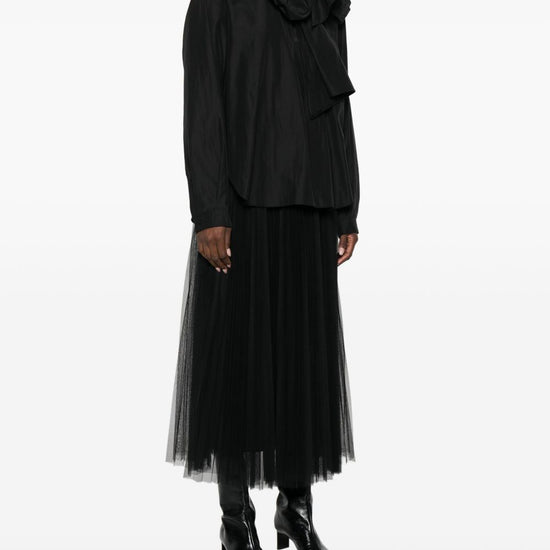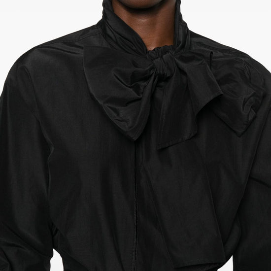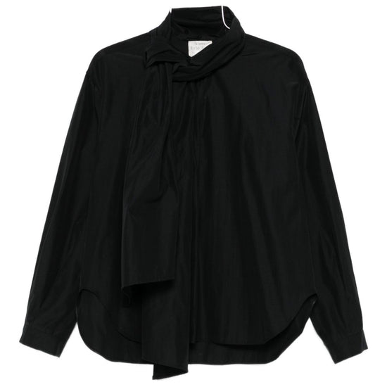 Black tie detail long sleeves buttoned cuffs curved hem taffetas shirt