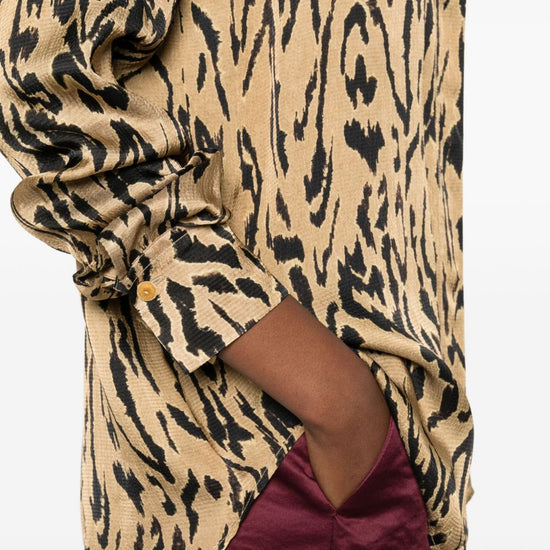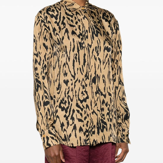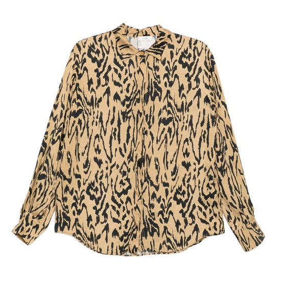 Beige animal print button fastening long sleeves buttoned cuffs classic collar printed shirt