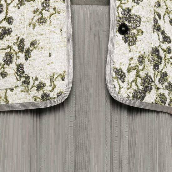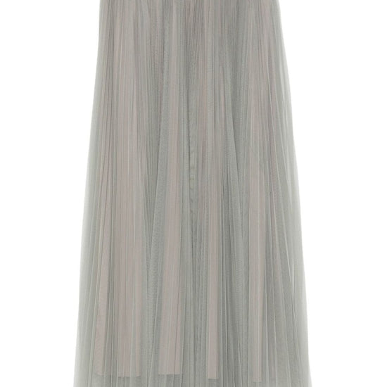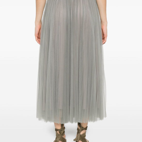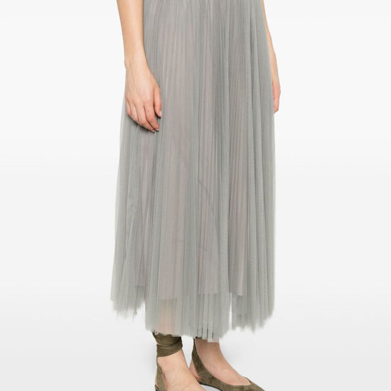 Grey pleated tulle fabric high waist a-line shape midi length tulle long skirt