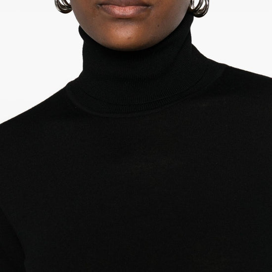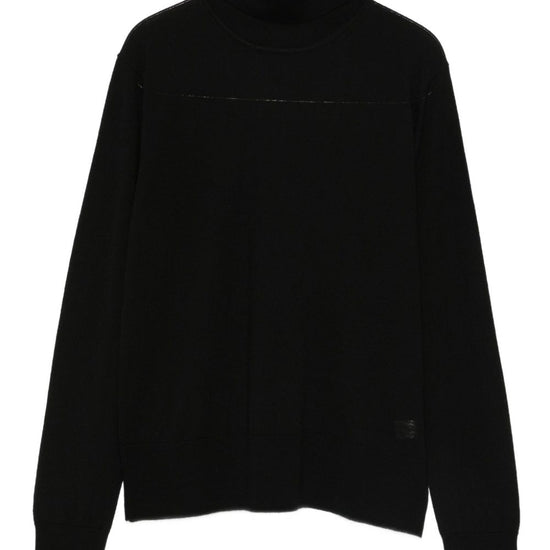 Black roll neck panelled design long sleeves ribbed cuffs ribbed hem wool turtle-neck sweater