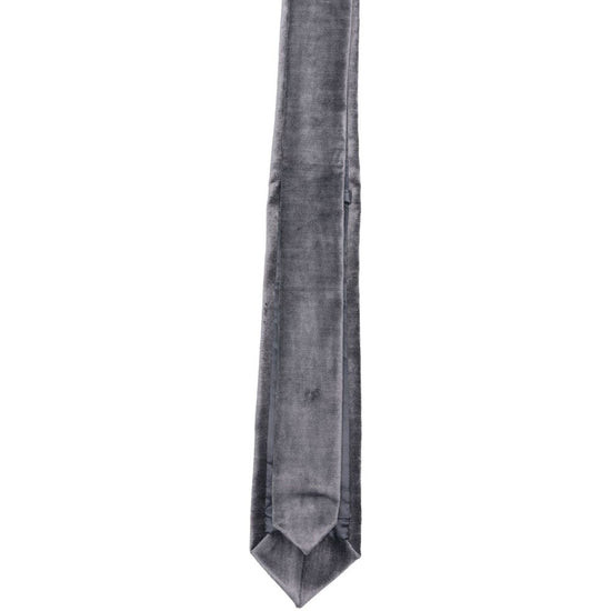 Grey cotton blend pointed tip adjustable fit velvet tie