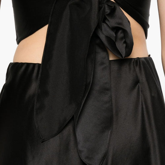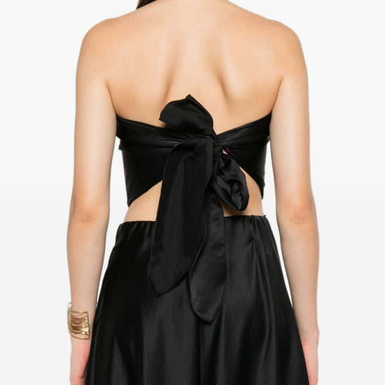 Black bandeau style draped detail self-tie fastening straight neckline strapless bustier top