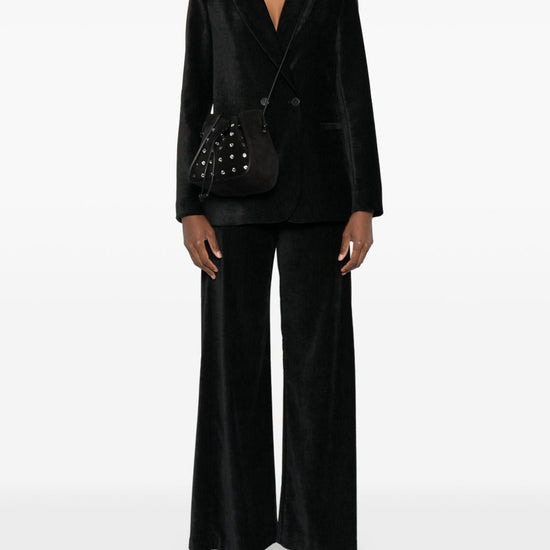 straight hemline velvet high-waisted trousers size and fit - this piece fits true to size. we recommend you get your regular size. model is 1,75m / 5ft 8in wearing size 1 (num)