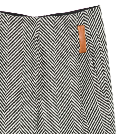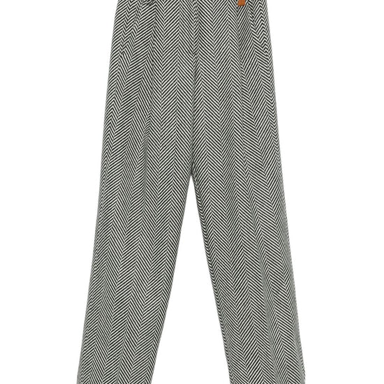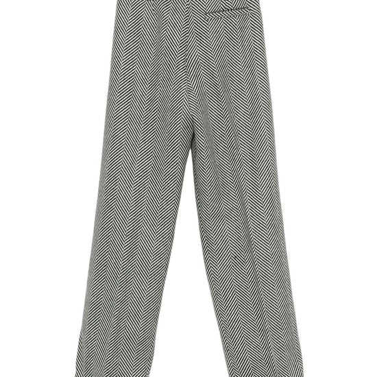 Black/white chevron motif concealed front fastening rear welt pocket  wool trousers