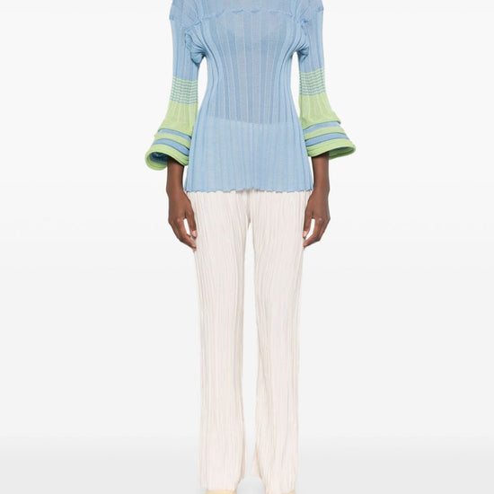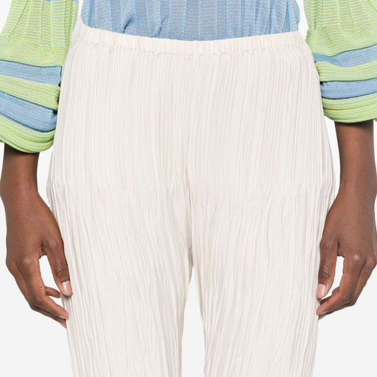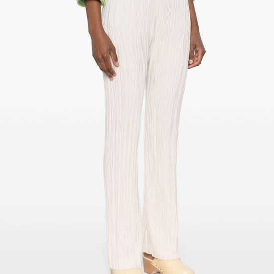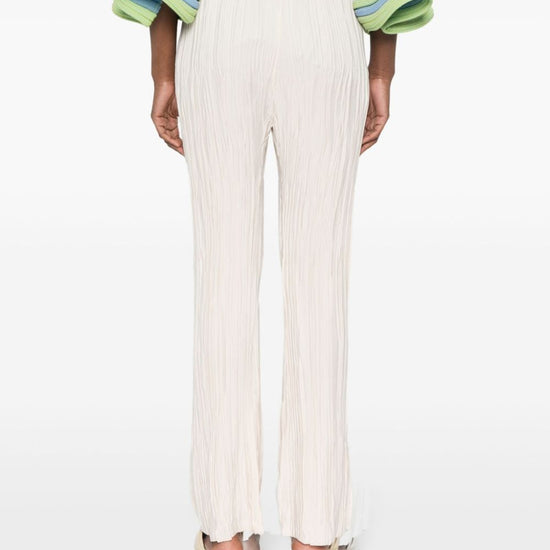 Beige crepe texture fully pleated high-waisted straight leg pleated crepe trousers size and fit - this piece fits true to size. we recommend you get your regular size. model is 1,75m / 5ft 8in wearing size 1 (num)