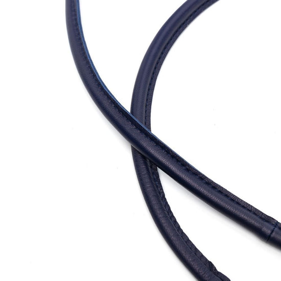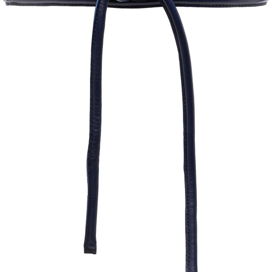 Navy blue calf leather adjustable fit cord band front tie fastening leather belt size and fit - maximum length: 260.0 centimetres. width: 1.0 centimetres.