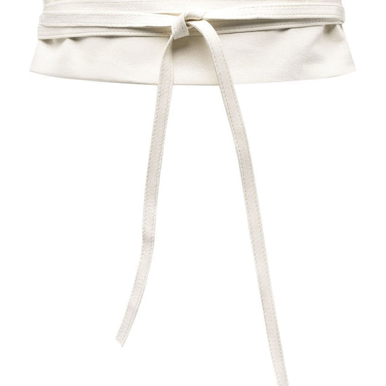 High-waist tie-fastening belt from furling by giani featuring off-white, calf leather, wraparound style, high waist and self-tie fastening. geisha tie-fastening leather belt size and fit - maximum length: 80.0 centimetres. width: 10.0 centimetres.