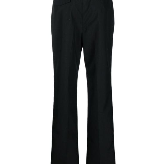 Black pleat detailing belt loops mid-rise straight leg tailored cut off-centre front button fastening two side inset pockets rear flap pocket rear jetted pocket pieghe wool blend trousers size and fit - this piece fits true to size. we recommend you get your regular size. model is 1,75m / 5ft 8in wearing size 40 (it)