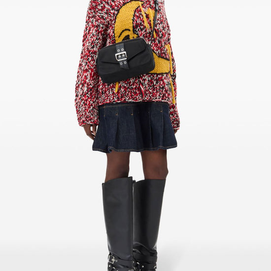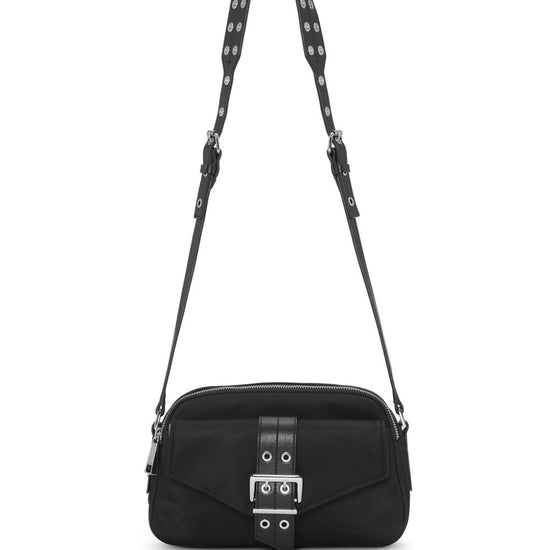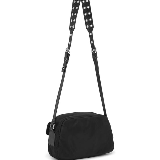 Black recycled nylon technical jersey top zip fastening front buckle fastening adjustable detachable shoulder strap stud embellishment eyelet detailing front flap pocket main compartment this item is made from at least 50% recycled or upcycled materials. for recycled synthetic clothing products, we highly recommend using a microfibre-catching washing bag to ensure that no microplastics that can pollute water are released in the process. we've partnered with good on you — an independent agency that rates how brands perform in relation to their impact on the planet, people and animals, with a multi-criteria rating simplified to a five points scale. in order to be awarded our conscious label, larger brands need to score a minimum of four out of five ('good'), while smaller brands must score at least three out of five ('it's a start'). this item comes from a brand rated three out of five ('it's a start') by good on you at the time it was added on farfetch. please note, this is a brand-lev bucky camera bag size and fit - width 10,43 in / 26,5 cm