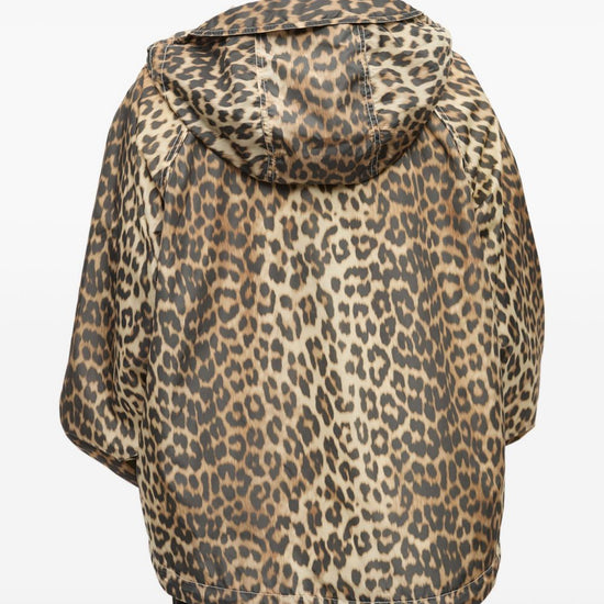 Beige hooded design elasticated cuffs logo patch detailing voluminous silhouette nylon blouson jacket