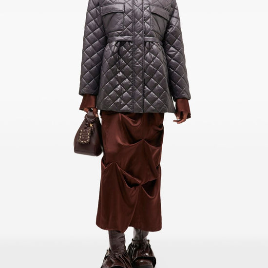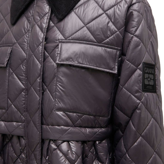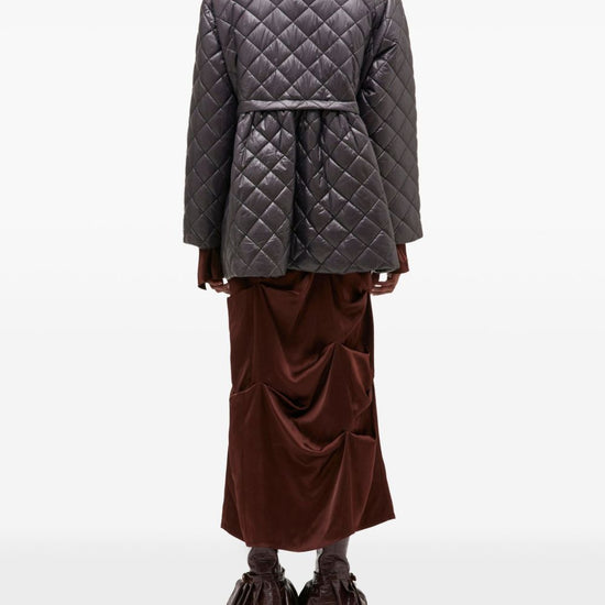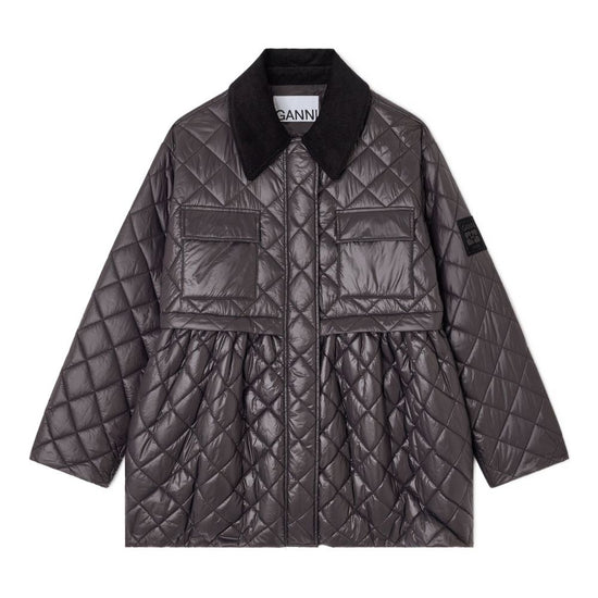 Brown quilted corduroy collar chest pockets flared hem recycled nylon quilted jacket