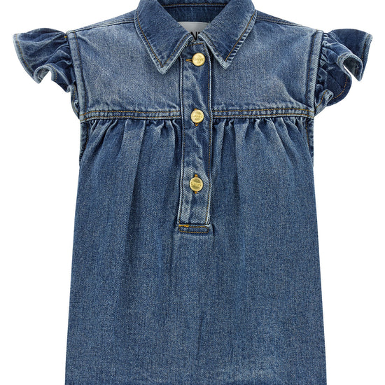 Ganni Denim Ruffle Top