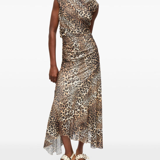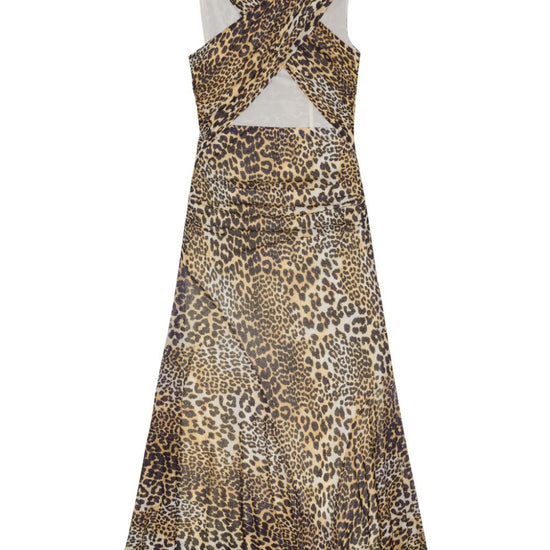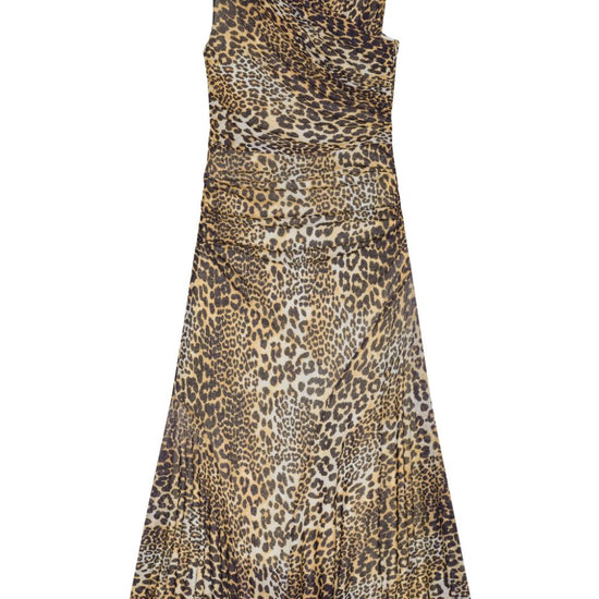 Ganni Leopard Marl Mesh Long Ruched Crossover Dress