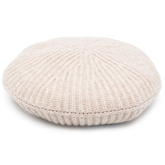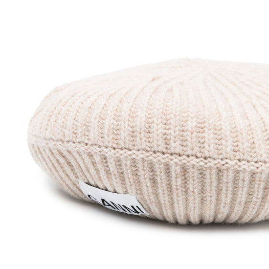 Cream white recycled wool blend logo patch to the front ribbed knit circular body slip-on style this item is made from at least 50% recycled or upcycled materials. for recycled synthetic clothing products, we highly recommend using a microfibre-catching washing bag to ensure that no microplastics that can pollute water are released in the process. learn more about what makes a product conscious on our conscious criteria page. ribbed wool hat size and fit - brim: 8.0 centimetres. circumference: 19.0 centimetres.
