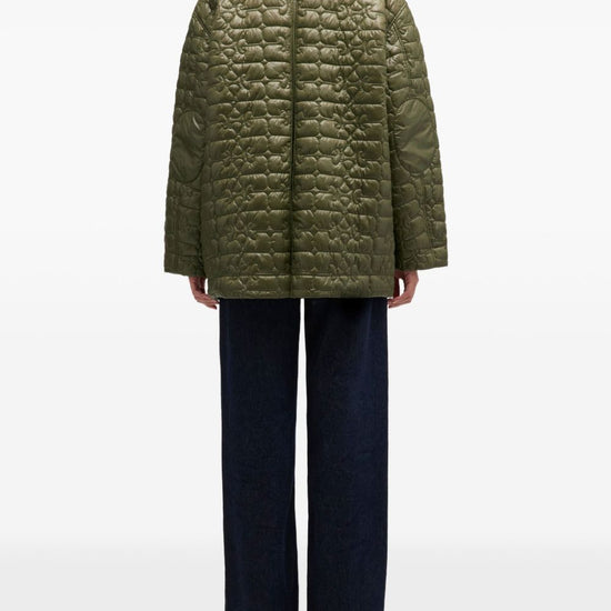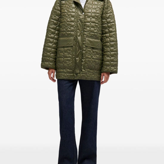 Olive green quilted corduroy collar front pockets button fastening quilted jacket