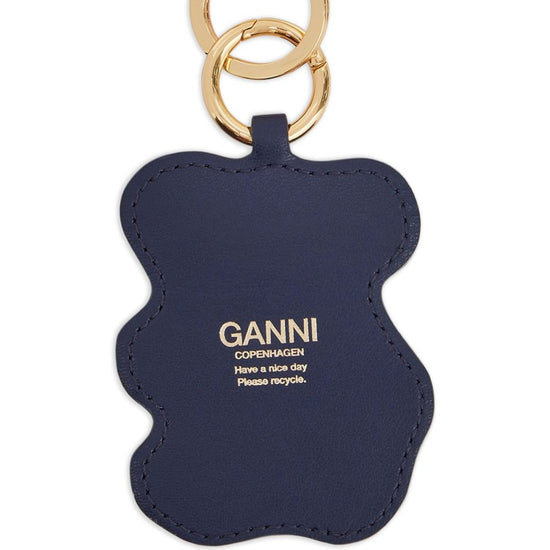 Navy blue teddy shape gold-tone hardware double ring detail bear keyring