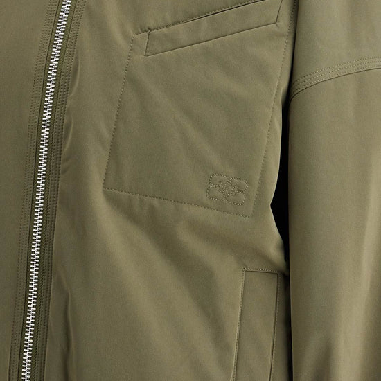 Short oversized bomber jacket from ganni with a boxy cut. made of lightweight sustainable technical twill with recycled padding, it features a zip closure, ribbed collar and cuffs, and an elasticated hem. the side pockets and logo pocket on the chest complete the design. contrast lining. the model is 177 cm tall and wears size s/m.