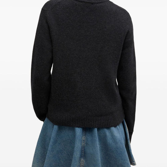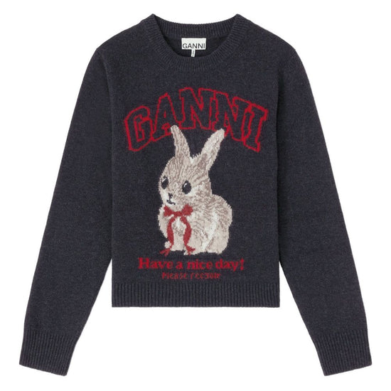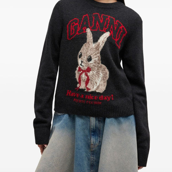 Dark grey graphic print round neck long sleeves ribbed hem ribbed cuffs wool crewneck sweater