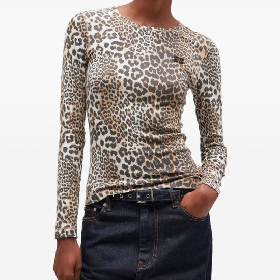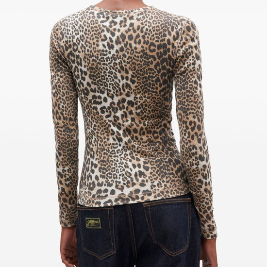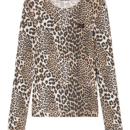 Brown animal print round neck long sleeves logo detail organic cotton crewneck sweater