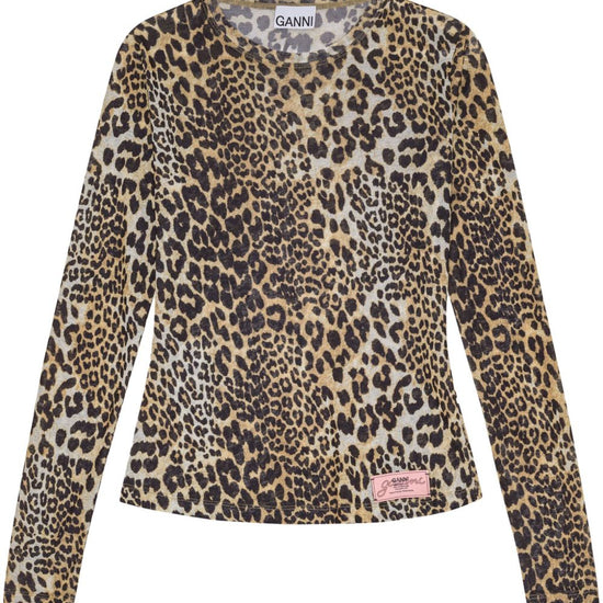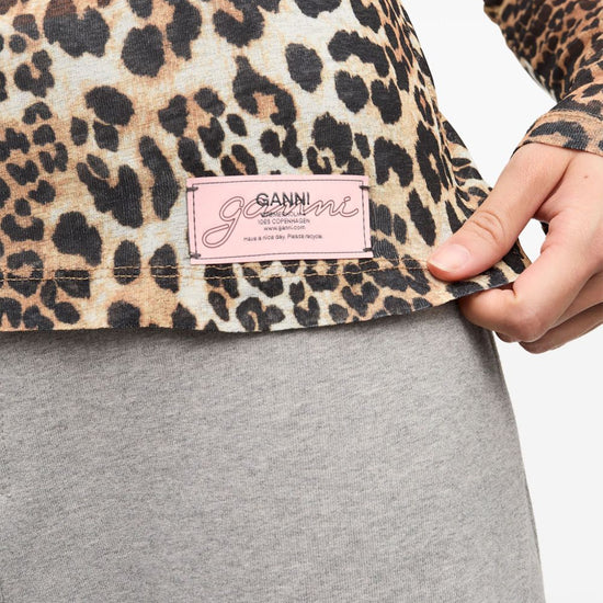Light browncrew necklong sleeveslogo patch to the side leopard print t-shirt