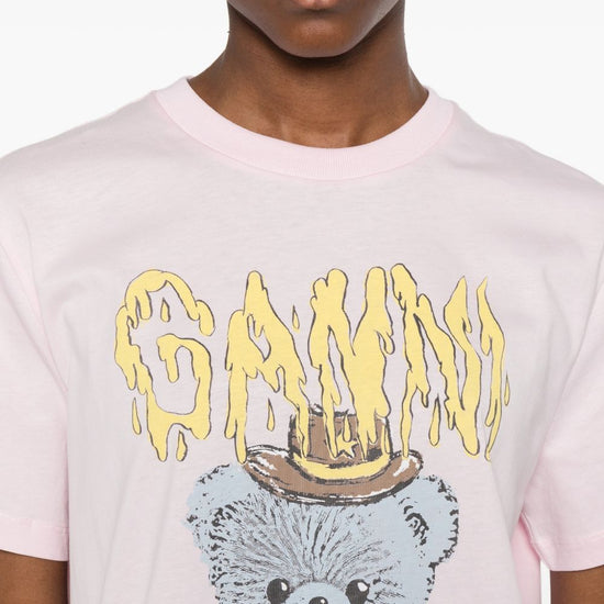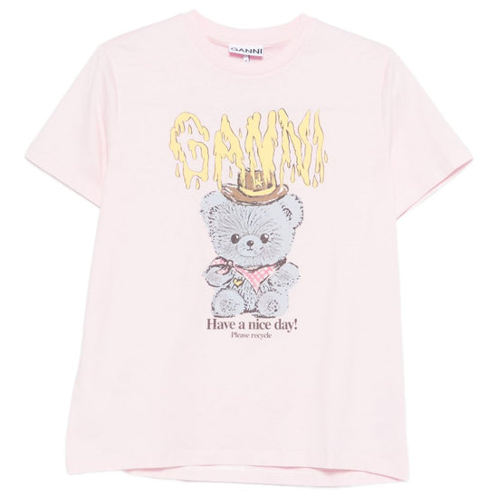 Light pink graphic print round neck short sleeves cowboy bear organic cotton t-shirt size and fit - .