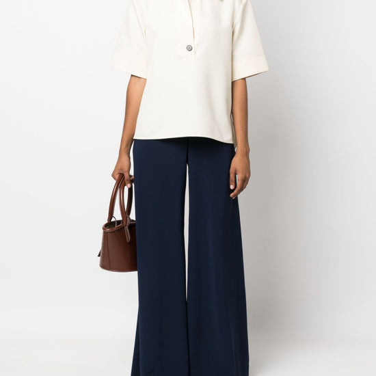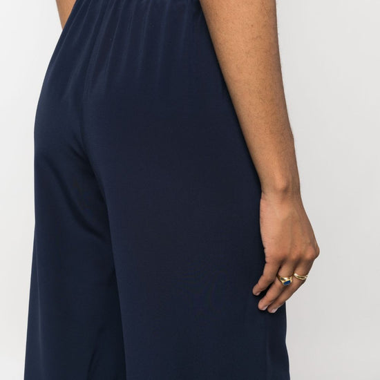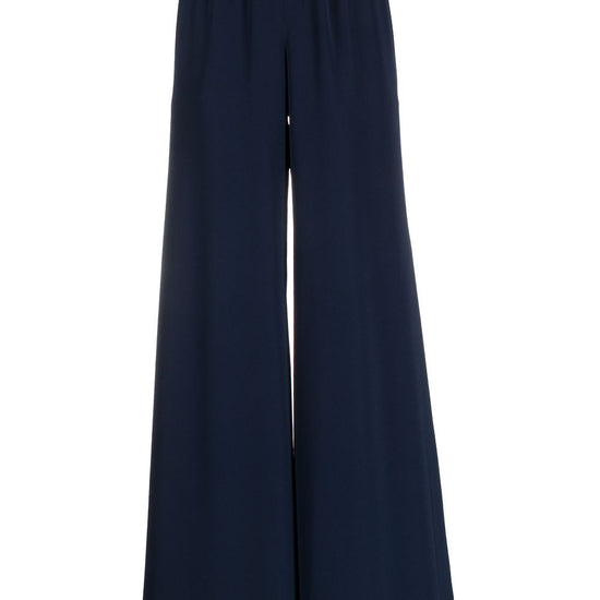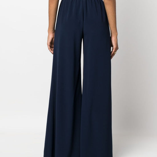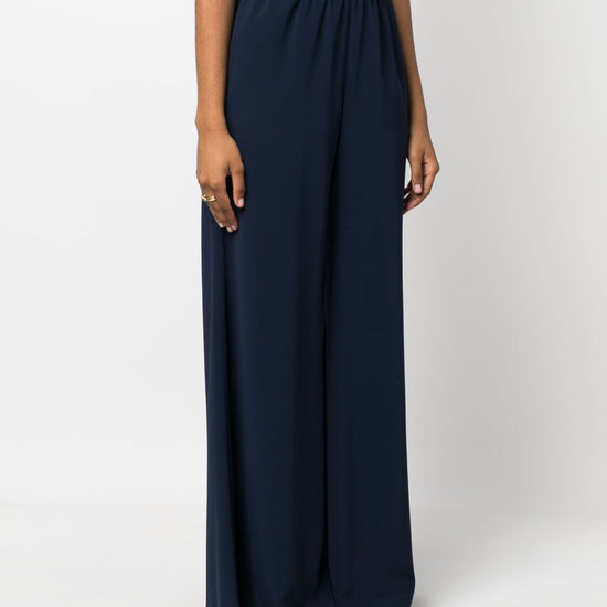 Antonia wide-leg trousers from gianluca capannolo featuring navy blue, high-waisted, elasticated waistband, wide leg, flared and floor-length. satin wide leg trousers size and fit - this piece fits true to size. we recommend you get your regular size. model is 1,75m / 5ft 8in wearing size s
