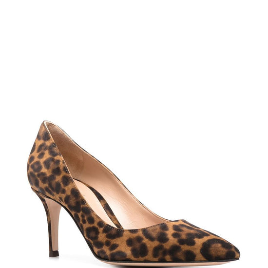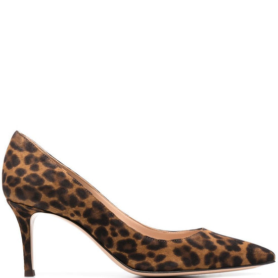 Brown calf suede all-over leopard print pointed toe branded leather insole 70mm stiletto heel gianvito 70 suede leather pumps size and fit - heel height 7 cm. .